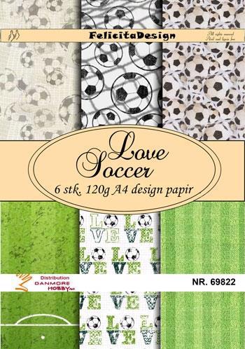 Felicita Design - Design Papir - Love Soccer - A4Str. A4 - 6 forskellige ark, enkelsidet i grønne og sorte farver med fodboldbaner og boldeVægt: 120 g.