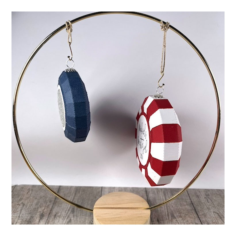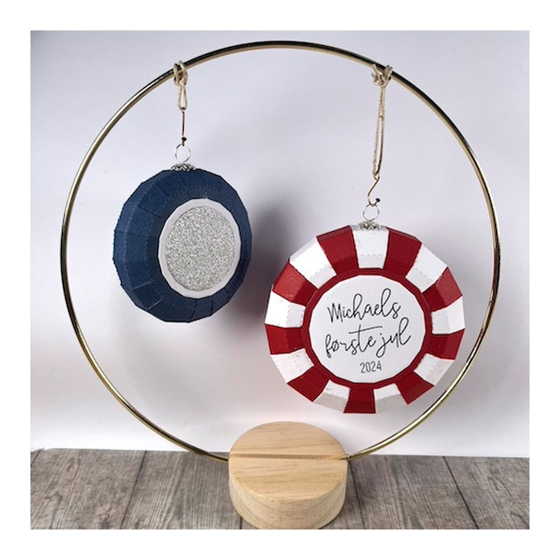 Flad julekugle - Stor fra Dan Dies indeholder 4 dies - 2 ens "appelsin både" og 2 18-kanter. For at samle julekuglen skal der i alt bruges 18 "appelsin både", så de 2 ens dies gør at du hurtigere kan få skåret ud til dine kugler. Der skal også bruges 2 store 18-kanter som forside og bagside. Den mindre 18-kant kan bruges som pyntelag hvis man har lyst. Brug det f.eks. til et billede. Den samlede kugle har en diameter på ca. 9,1cm og en tykkelse på ca. 3cm.