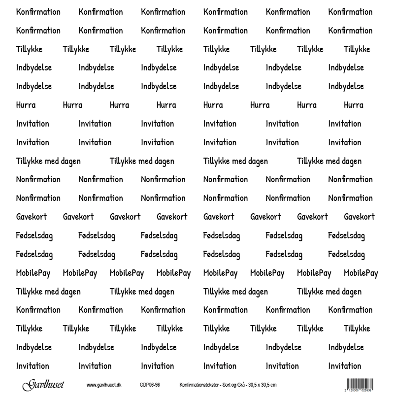 Gavlhusets Design - Papir - Konfirmationstekster - Sort og Grå
