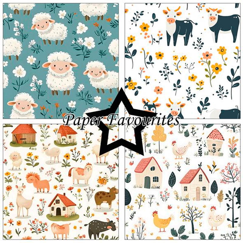 Paper Favourites - Blok 12'' - Cute Farm Animals / Søde bondegårdsdyr