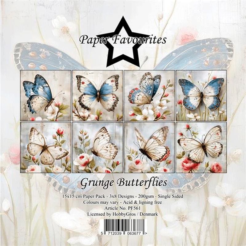 Paper Favourites - Blok 6'' - Grunge Butterflies / Grunge sommerfugle