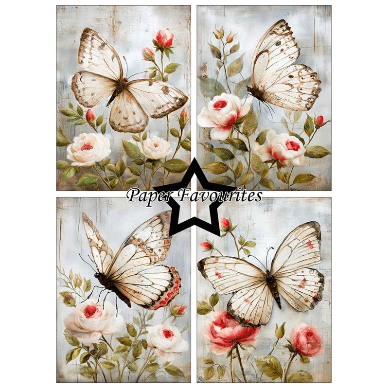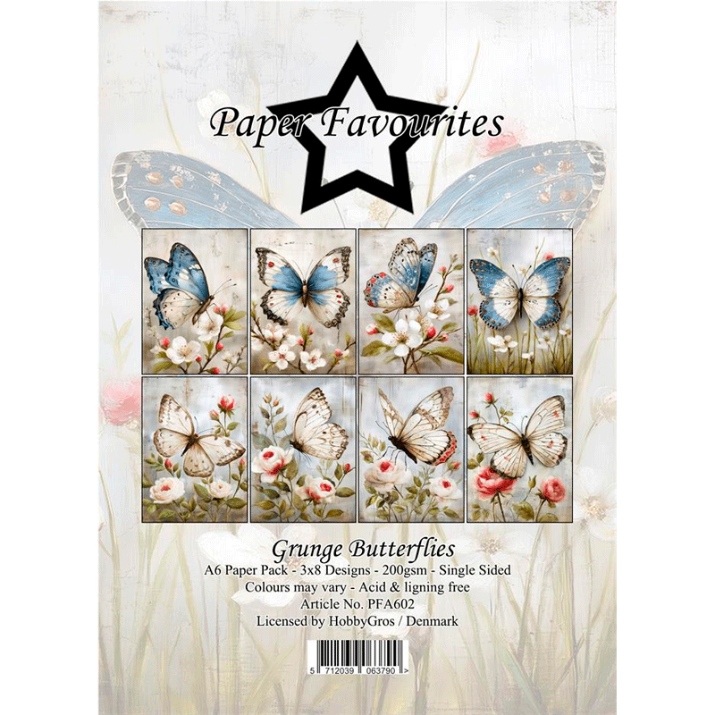 Paper Favourites - Blok A6 - Grunge Butterflies / Grunge sommerfugle