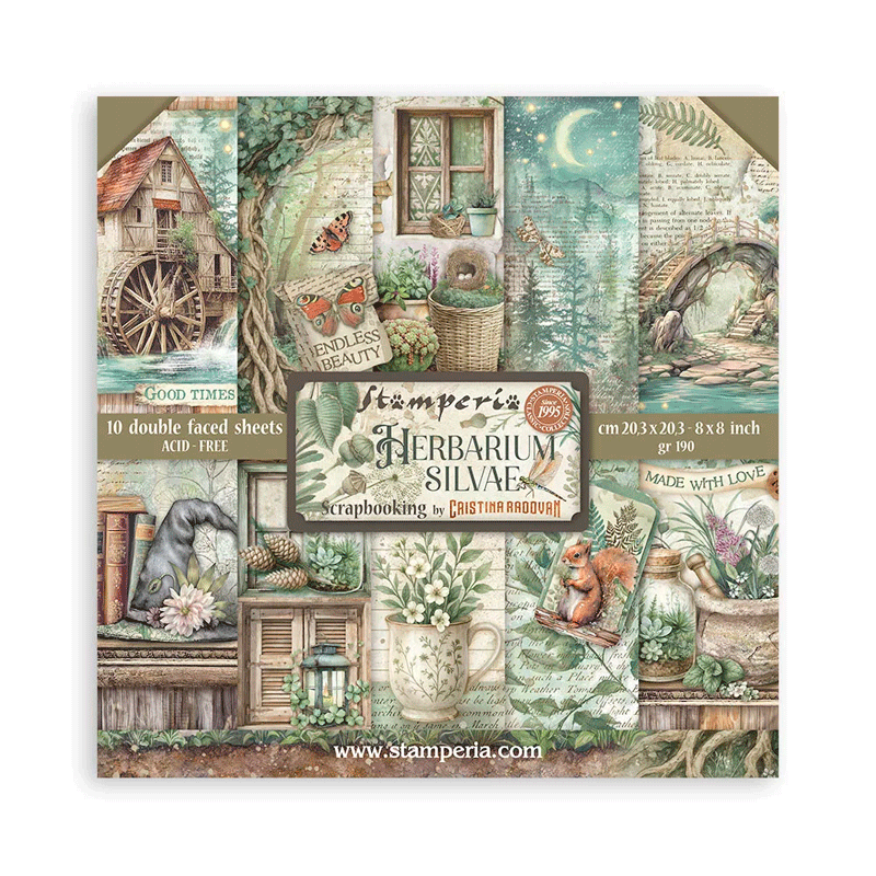 20,3x20,3 cm. 10 dobbeltsidede ark. 190 g, syrefri.