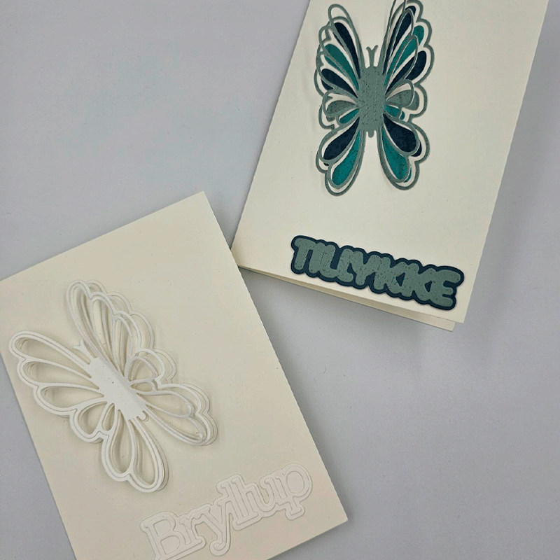 Sommerfuglemotivet passer godt til forår, sommer, blomsterkort og fine detaljer på dine papirprojekter.