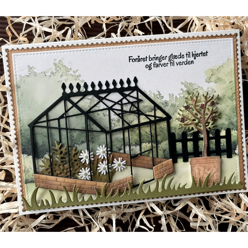 Die med drivhus fra Gavlhusets Design, perfekt til kort, scrapbooking og kreative projekter med have, blomster og udeliv som tema.