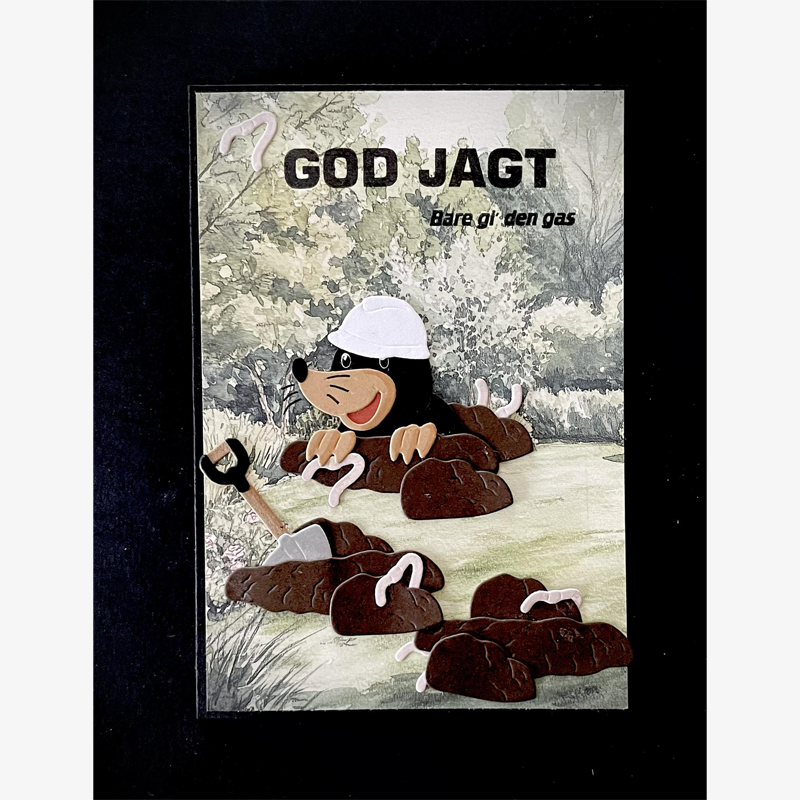 Muldvarpen giver et sødt og legende udtryk, som passer godt til både kort, tags, pynt og små hjemmelavede hilsner.