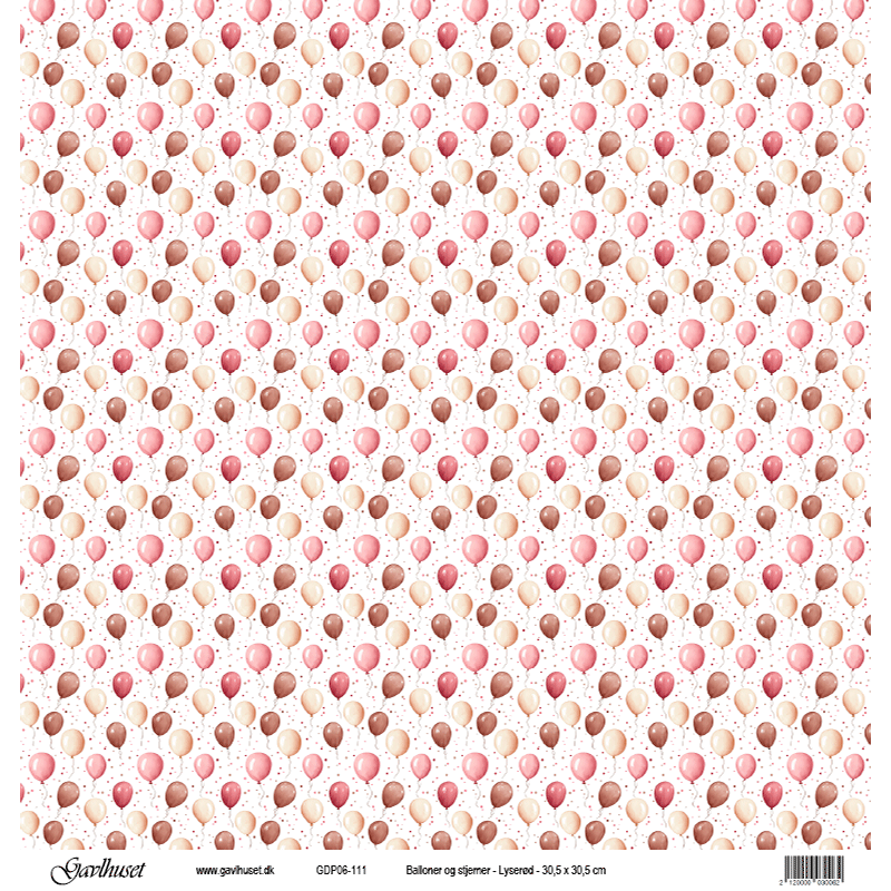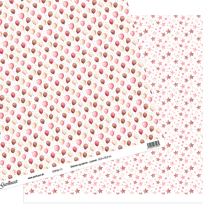 Gavlhusets Design - Papir - Balloner og stjerner - Lyserød