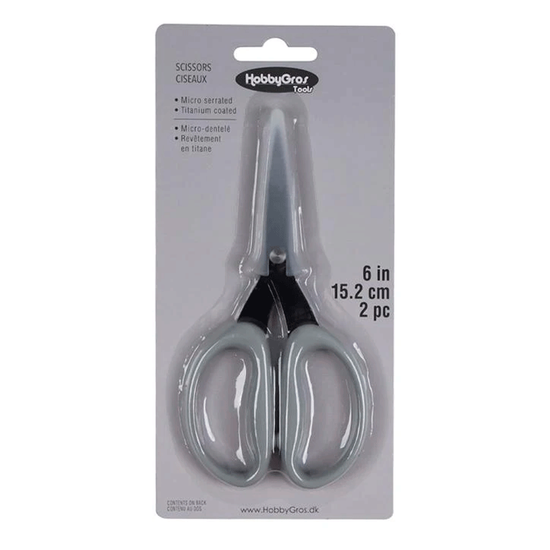 Praktisk og alsidig saks fra HobbyGros Tools, perfekt til hobby- og detaljearbejde. Saksene er 6” (15,2 cm). De mikro-tandede blade sikrer et godt greb i materialet og giver en mere præcis klipning, mens titanium-belægningen øger holdbarheden og modstandsdygtigheden over for slid.