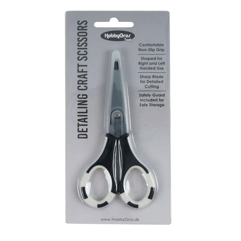 Præcisionssaks designet til detaljeret klippearbejde. Denne detailing craft saks har skarpe blade, der gør den ideel til fine udskæringer i papir, karton og andre kreative materialer. Det komfortable, skridsikre greb sikrer god kontrol, og saksen er formet til både højre- og venstrehåndsbrug. Medfølgende sikkerhedshætte beskytter bladene under opbevaring.