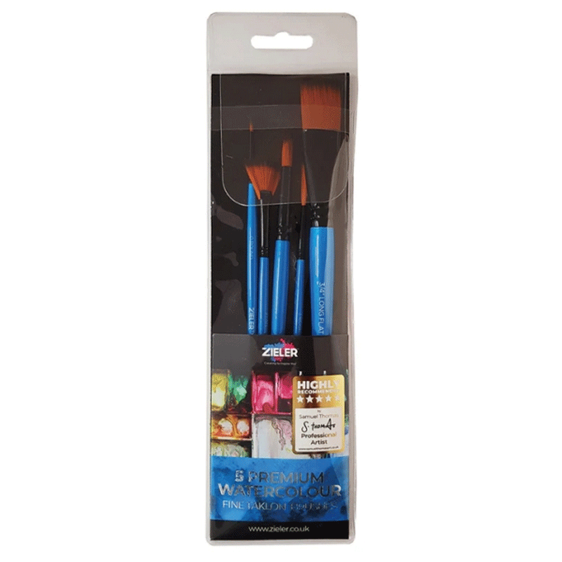Opnå præcise og flotte penselstrøg med Zieler akvarel penselsæt (5 stk.) – et alsidigt penselsæt til både begyndere og øvede kunstnere. Sættet indeholder syntetiske pensler i høj kvalitet, som sikrer jævn farvefordeling og lang holdbarhed.