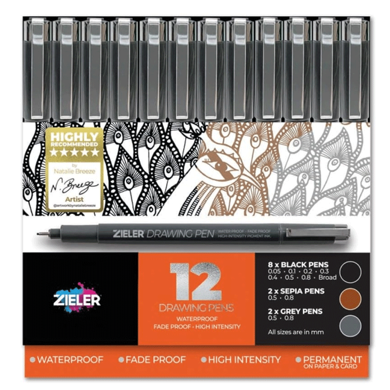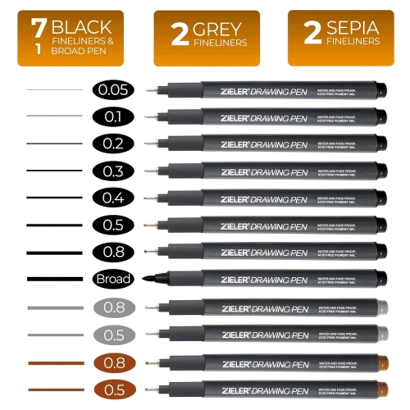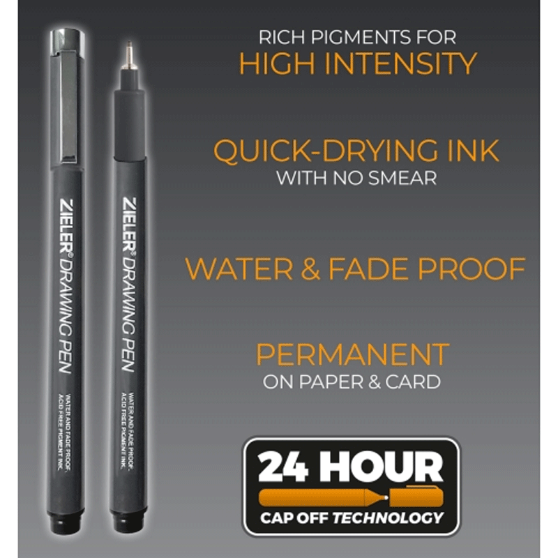 ZIELER Fineliner Tegnepenne – 12 stk. Professionelt Drawing Pen Set