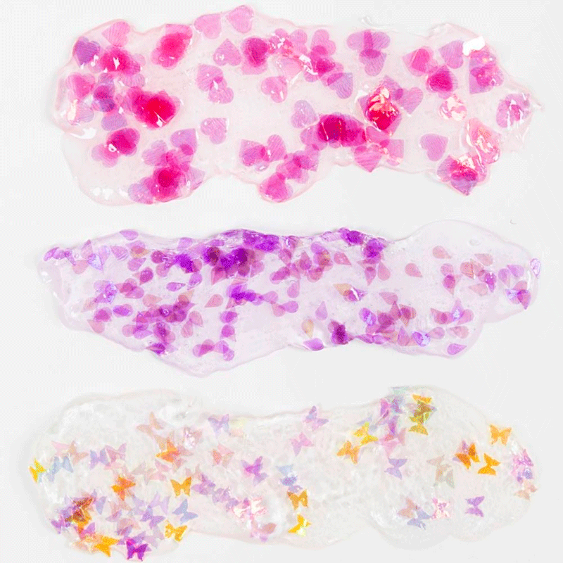 Transparent modelleringsmasse med farverige pailletter i sjove motiver. Perfekt til at dekorere og beklæde med. Hæfter på mange overflader og tørrer hårdt op. Massen æltes godt igennem inden brug for at fordele pailletterne.